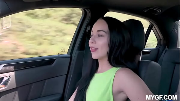 Young blonde amateur Kelsey gets in the bus to have fun
